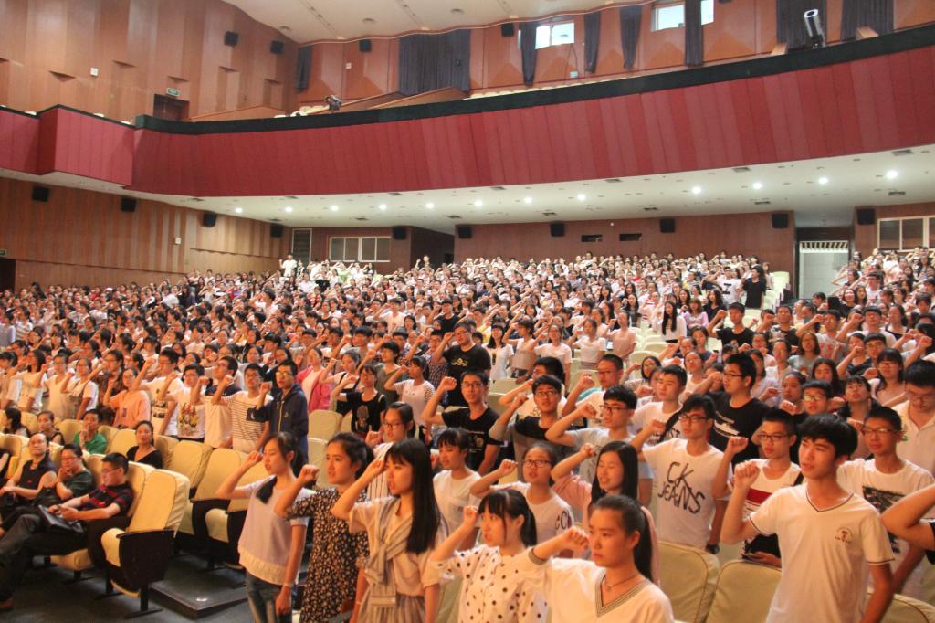全体新生将满怀信心,带着微笑,努力涵养“博、爱、雅、艺”的师范气质,勿忘中国梦,牢记历史,面向未来,成就自我,不负青春,为中华之崛起而读书!
