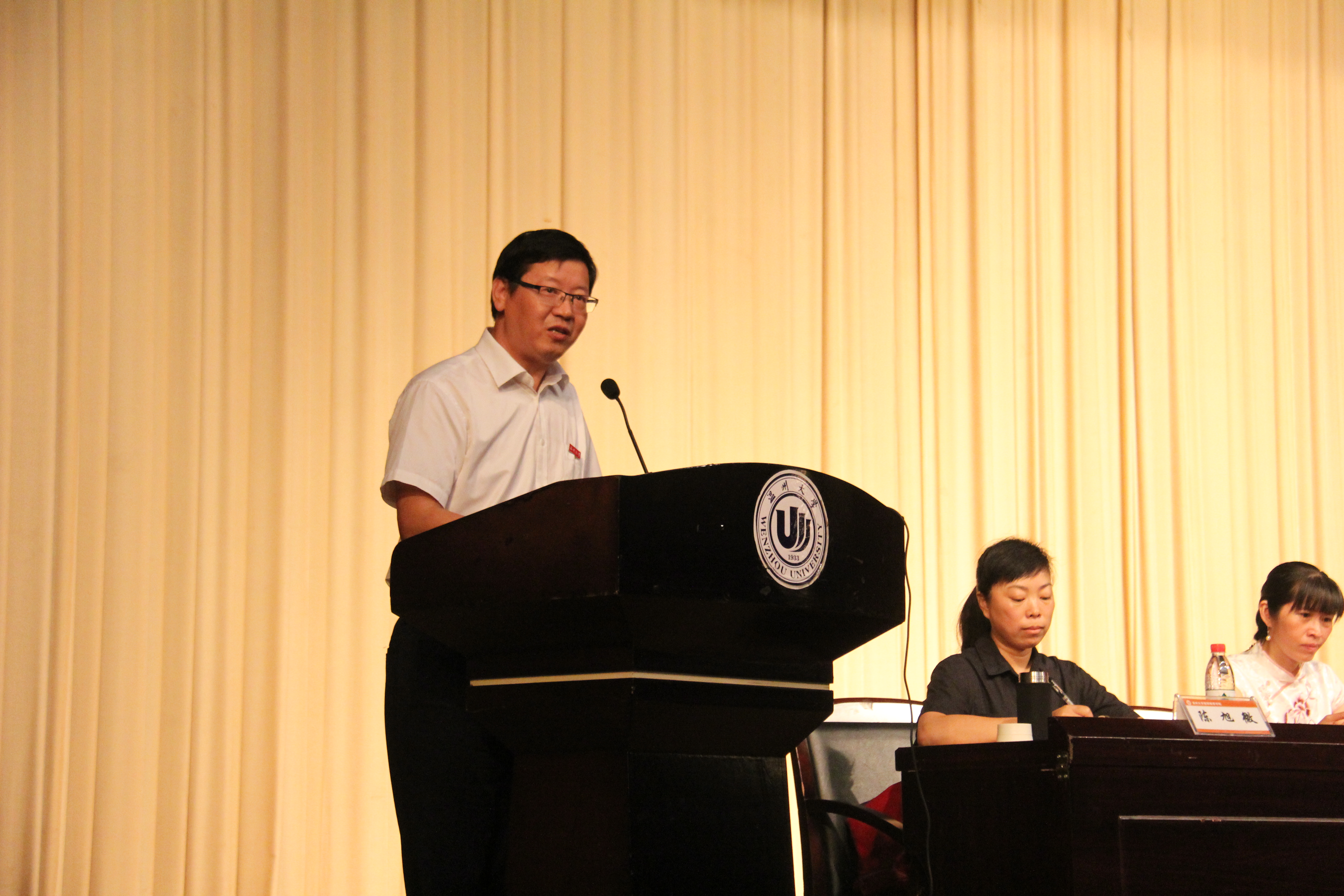 教师代表教育技术系主任系杨刚老师饱含深情地代表集体教师对16级新生表达欢迎和对新生们的热切期望,希望他们能够培养自己“博、爱、雅、艺”的师范气质,成为一个让自己骄傲,甚至是让教师泥巴影院