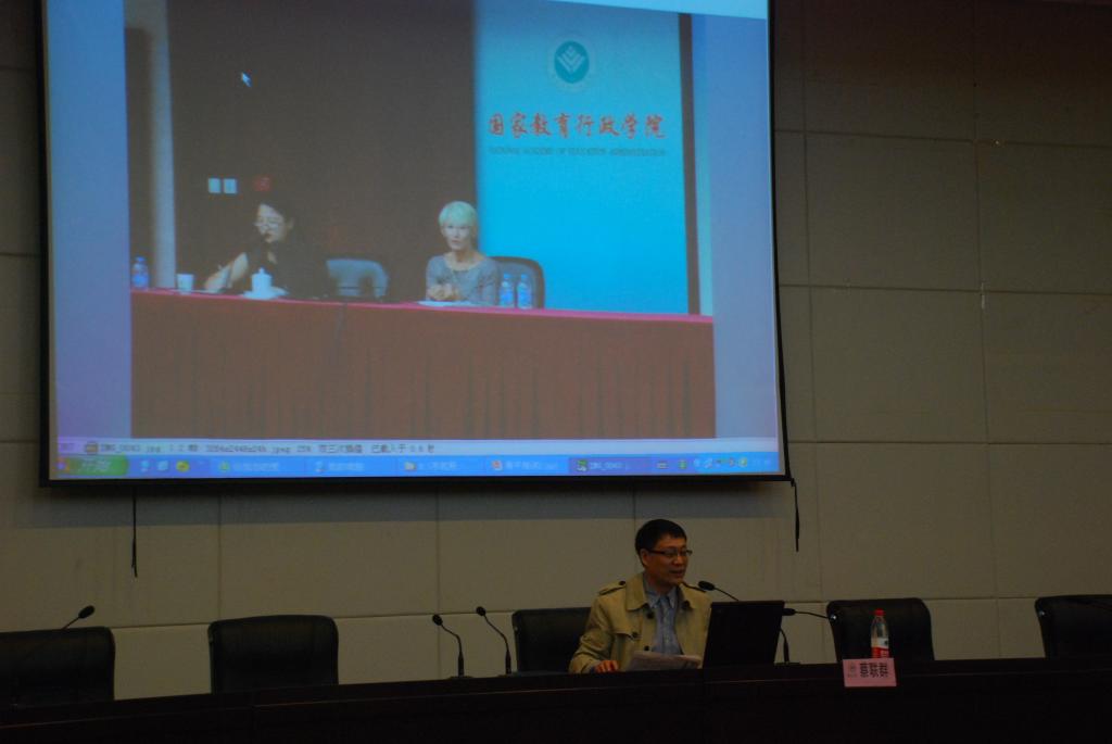 蔡老师就刚结束的十八届三中全会,结合前三个月在国家教育行政学院学习的所见所闻和亲身经历展开报告。报告详细解读了中共中央关于全面深化改革若干重大问题的决定。蔡老师指出以当前亟待解决的重大问题为提领,按条条谋篇布局。除引言和结束语外,共分16个部分,为三个板块。第一部分构成第一板块,是总论,深刻阐述全面深化改革的重大意义、指导思想、总体设计。第二至第十五部分构成第二板块,是分论,从经济、政治、文化、社会、生态文明、国防和军队6个方面,具体部署全面深化改革的主要任务和重大举措。第十六部分构成第三板块,讲组织领导问题,主要阐述加强和改善党对全面深化改革的领导。期间蔡老师讲到习近平总书记在《报告》说明中的“今天,我们比历史上任何时期都更接近于前人孜孜以求的实现中华民族伟大复兴的目标——距离全面建成小康社会还有7年!中国改革开放走过了35年,今天距离实现第二个百年目标也大致还有35年!”时,学员们为之振奋,以能够有幸见证这历史时刻而无比荣耀。蔡老师强调,作为未来的人民教师,关注现代政治形式与政策是我们的义务,同时我们更应当密切关注国家深化教育领域综合改革的基本方向和政治要点。蔡老师还深入浅出地从四个方面就深化教育领域综合改革进行讲述:一、以立德树人为导向,全面创新育人模式;二、以促进公平为重点,多方位缩小教育差距;三、以考试招生制度改革为龙头,优化教育体系和成才通道;四、以管办评分离为重点,改革管理体制和办学体制。