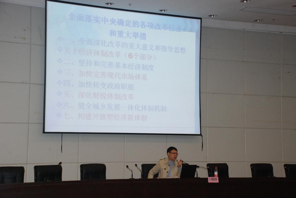 党总支书记蔡联群老师在南校图书馆育英大礼堂作了题为《凝聚中国梦,传递正能量——十八届三中全会精神学习体会》的精彩报告,辅导员严晓秋老师和全体骨干培训班学员近180人到场参加。