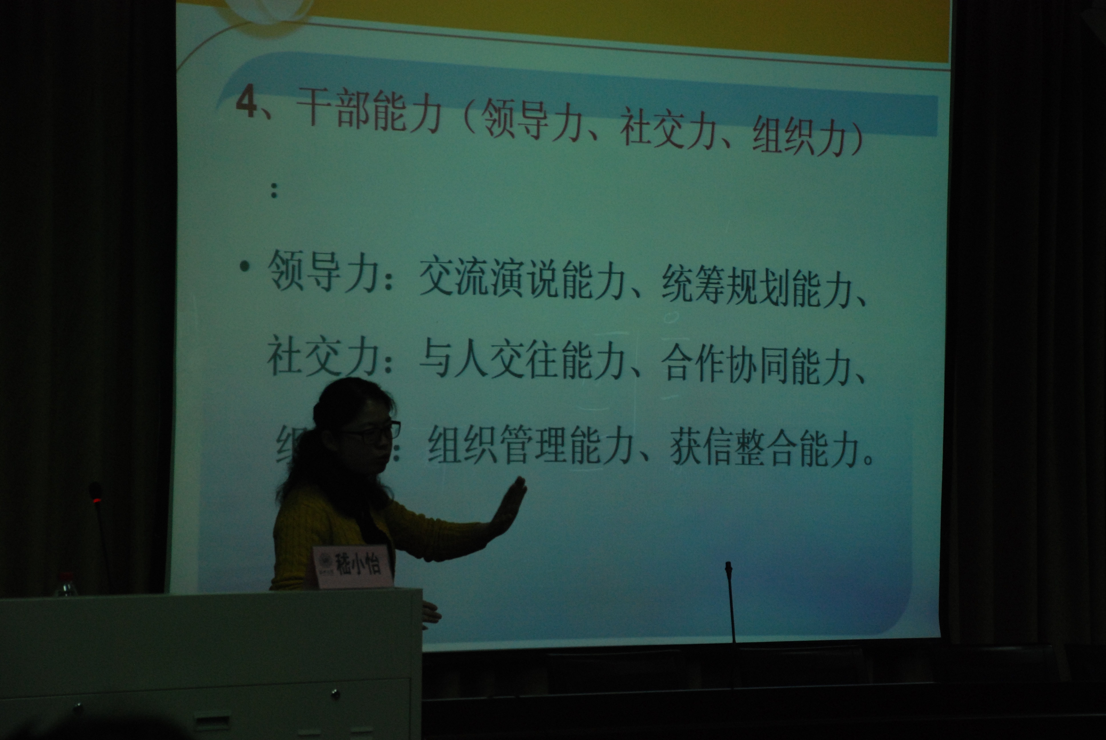 党总支副书记嵇小怡老师,参加本次培训的同学为全体学生干部。