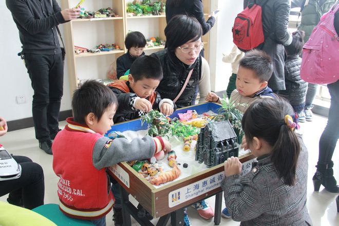 在家长的陪同下,40多名小朋友欢呼着涌入实验室,带队教师将其分成四组依次体验各实验室活动。在蒙特梭利教学实验室,日常生活教育、感官教育、数学教育、语言教育等五大领域的教具齐备,小朋友们被丰富的教具所吸引,他们体验地图嵌板、粉红塔、组合几何体盘、有些小朋友做了一串五颜六色的串珠,说这是送给妈妈的项链……;感觉统合实验室里,更是欢乐的海洋,小朋友们玩滑梯、平衡木,他们在海洋球池里“游泳”、嬉戏,玩得不亦乐乎;沙盘实验室里充分展现了他们丰富的想象力,男孩子们纷纷构建自己的城堡、军事基地、动物世界,女孩子摆出了温馨家园,有小桥、流水、花草……