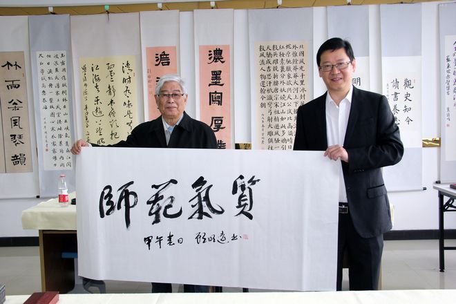 顾先生一行先后参观了蒙特梭利教学实验室、奥尔夫音乐教学法实验室、感觉统合实验室、未来教室、书法实验室,对实验中心先进的设备和教育理念表示赞许。在书法实验室,面对认真书写的学生,顾先生欣然写下“师范气质”的题词,笔力依然深厚遒劲,并对泥巴影院