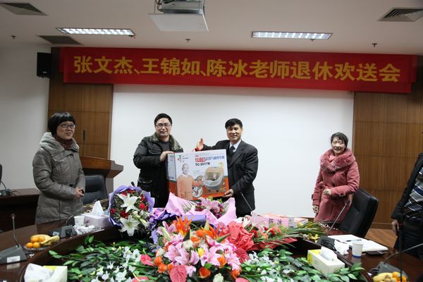 在欢送会上,教师代表向三位老师献上了美丽的鲜花,常务副院长胡来林代表学院向三位老师赠送了礼品,表达学院师生对他们的感谢和敬意。