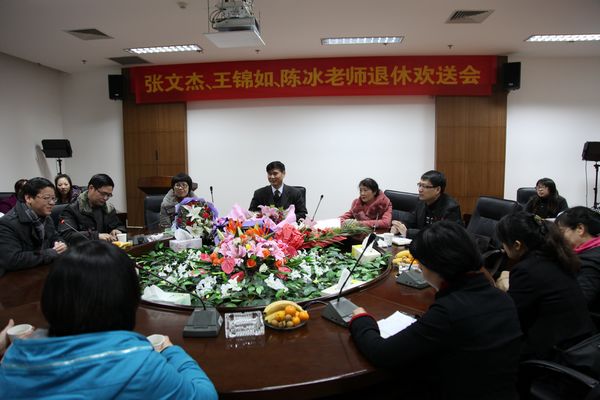 在南校区岩松堂展示厅举行张文杰、王锦如、陈冰三位老师老师退休欢送会。学院领导胡来林、蔡联群、郑信军、孙芙蓉、彭小明、嵇小怡及部分教师代表、毕业生代表出席了本次会议,蔡联群书记主持。
