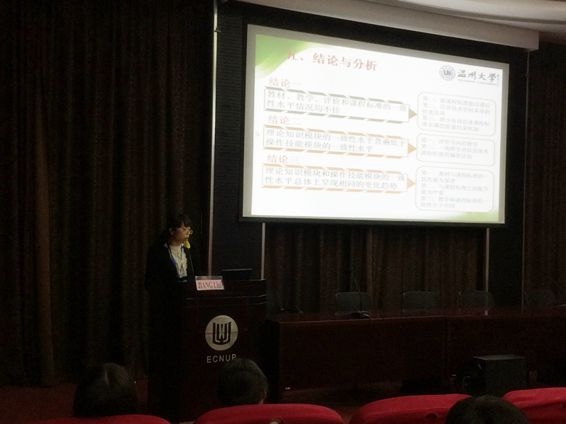 13级研究生姜丽希同学论文《高中课程标准实施一致性的研究——基于美国SEC一致性分析模式》(论文作者:姜丽希、孙芙蓉、王庆超)入选大会论文集,并受大会邀请做分会场主题发言。