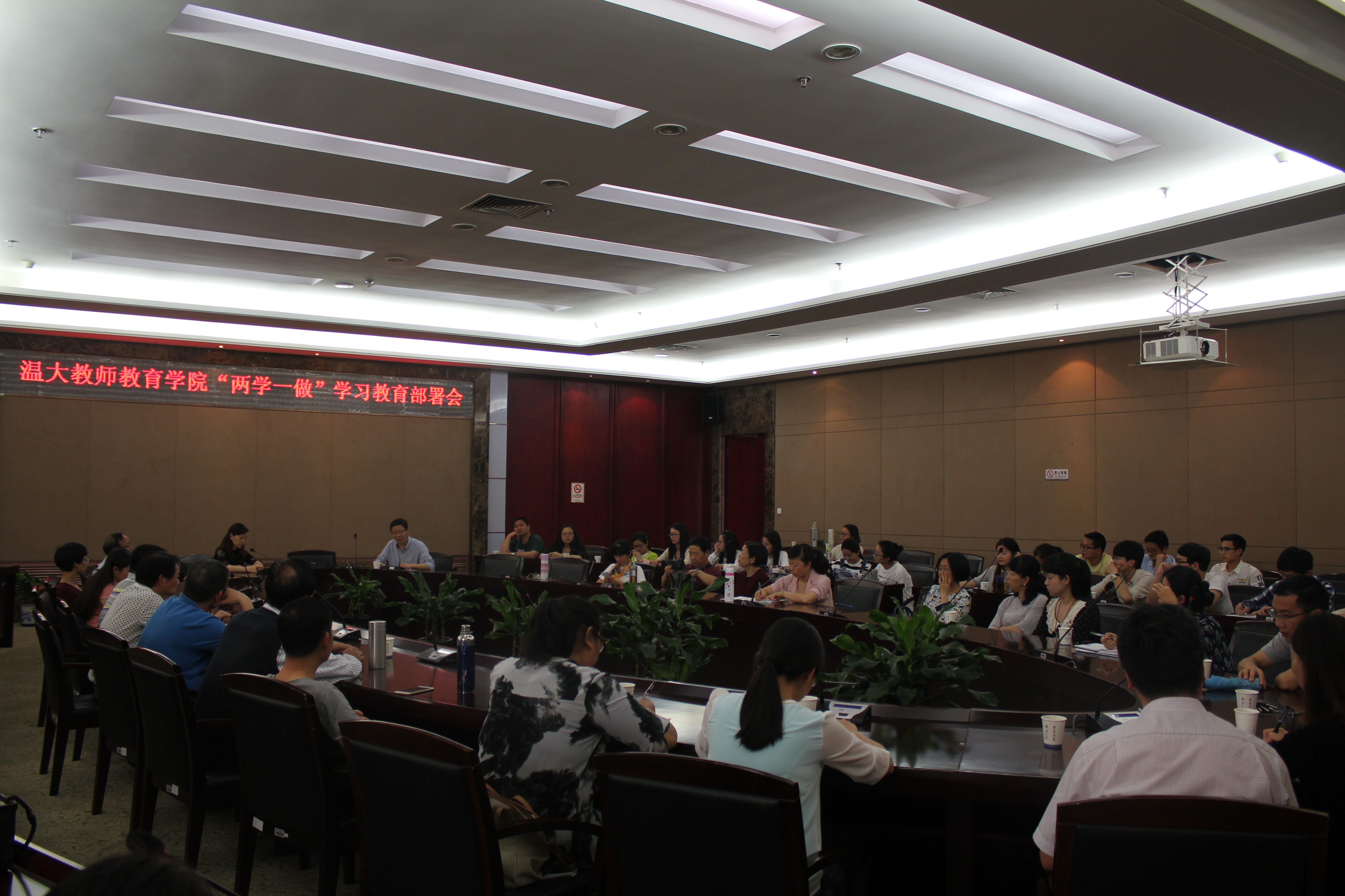 为全面贯彻落实校党委“学党章党规、学系列讲话,做合格党员”学习教育动员会议精神,5月25日下午,学院党总支在南校区岩松堂白鹿厅召开“两学一做”学习教育动员会暨形势政策报告会,全体教师党员和研究生党员近60人参加会议。会议由学院院长兼党总支副书记郑信军同志主持。