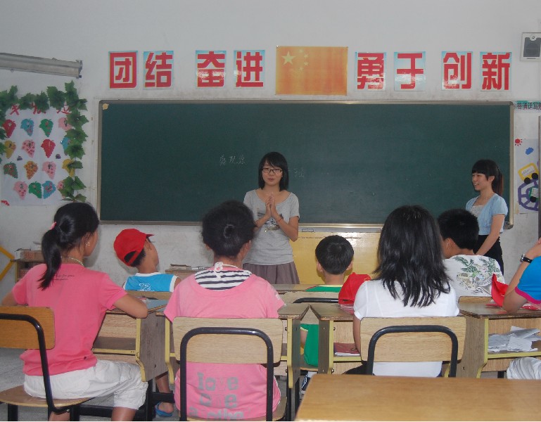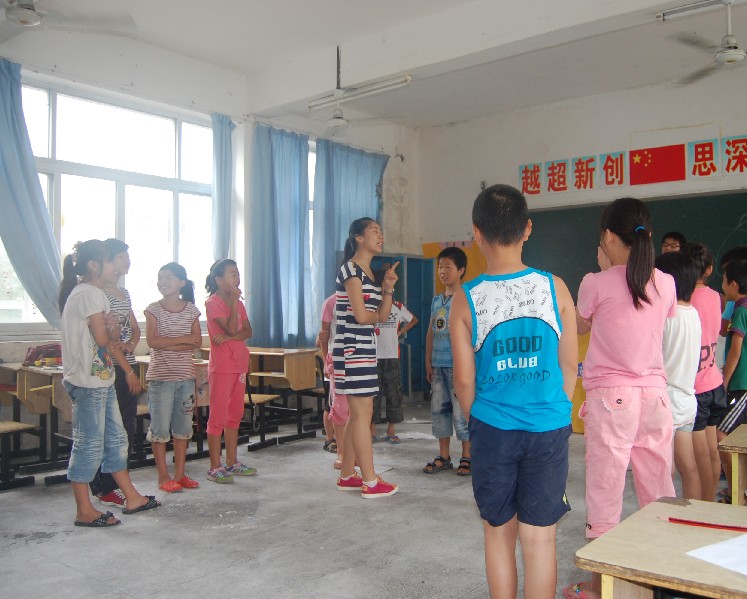 我们队伍本次实践的内容是在瑞安市高楼镇枫岭学校开展的暑期夏令营支教活动。早上八点整,各个年级和班级开始了他们的第一堂课,经过各位老师的组织和引导,同学们积极参与,气氛非常活跃,开班课进行得十分顺利。各位老师针对不同年级学生的各方面特征,安排了不同的教学内容。第一堂课主要以活动和班级交流为主,无论是普通话课、表演课、书法课还是国学课,都进行得有声有色,充分调动学生们的学习兴趣,为日后的教学开展奠定了良好的基础。在高年级的开班课——普通话课上,两位老师一起组织合作,做好自我介绍和基本的工作计划后,给班级的学生们分好组,并且让学生为自己的小组设计一张海报,方便了日后的普通话小组学习交流,并且大大增强了团体的凝聚力。之
