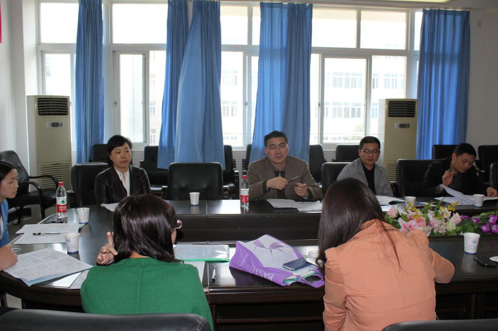 新教师汇报课研讨会。会议由学院教务科科长何笃玉主持,与会人员有新教师结对的专业指导师与相关系主任、书记、督导以及第七周开课的新教师等。