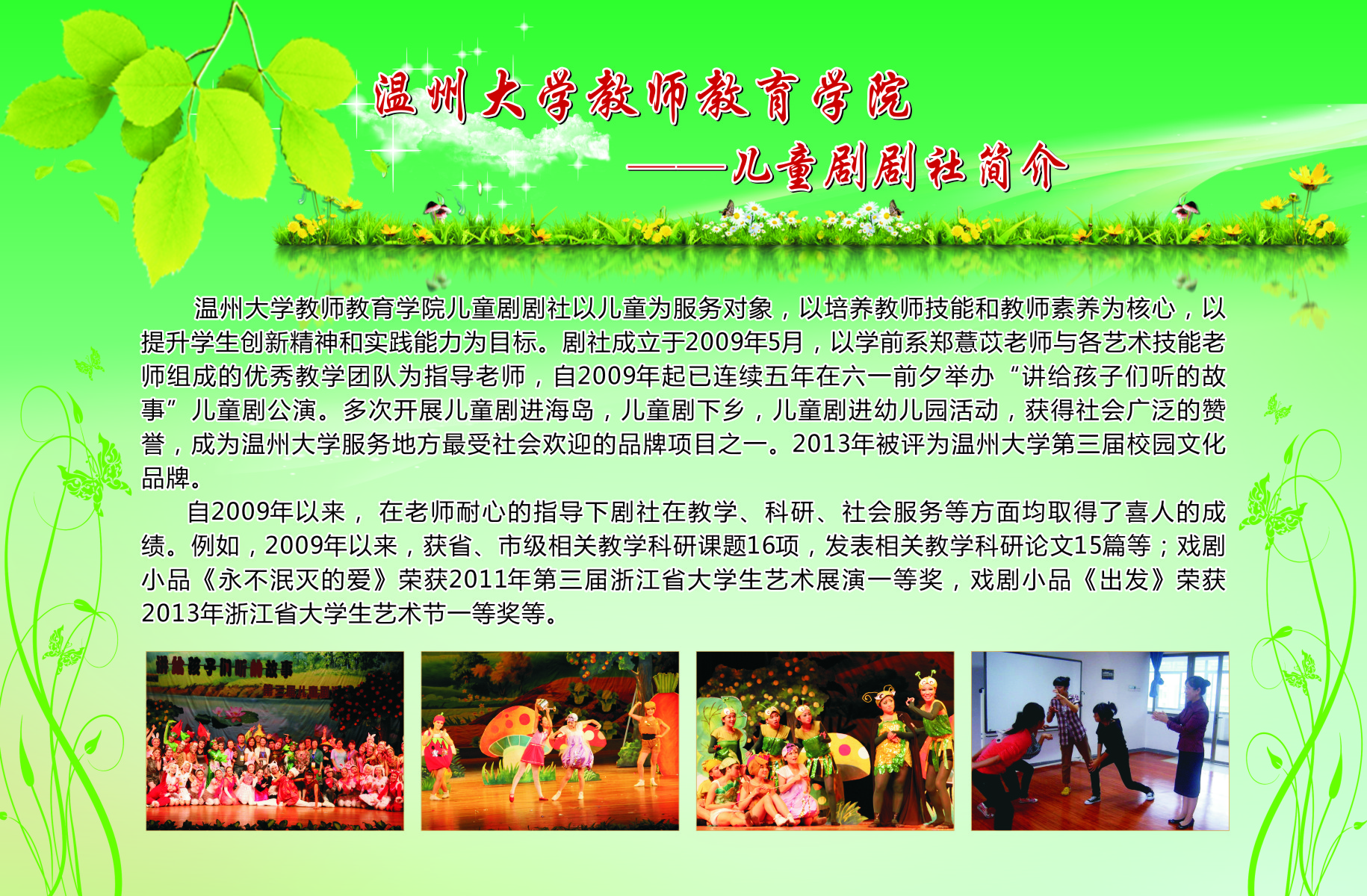 学生在全国、省、市、校文化艺术大赛中个人获奖达687人次,并不断以儿童剧公演、心理测量等方式公益服务社会。