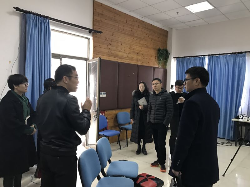 教学楼整体布局和教师教育实验中心,并认真了解了VR,书法工作坊,心理测量等的建设情况,进行了友好的交流与探讨,他们对泥巴影院