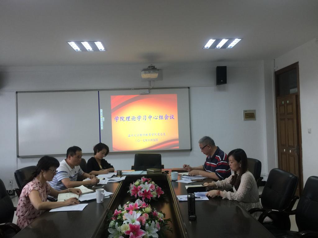 在南校区9A410会议室召开理论学习中心组会议,学院领导班子及党总支委员参加,会议由杨立淮书记主持。