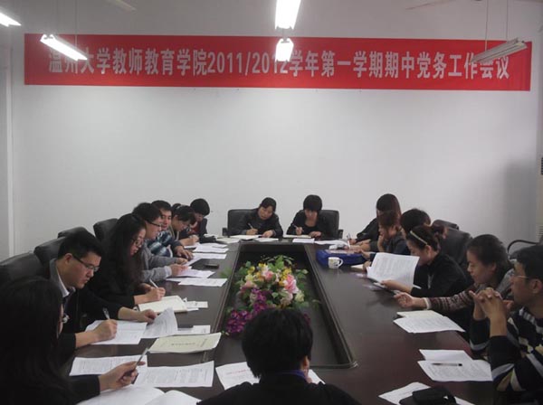 会上,蔡联群书记就推荐选举出席温州市第十一次党代会代表工作,“特邦”教书育人奖、优秀学生奖、最佳班级奖评选,“平安校园”迎评工作,院工会换届,特色支部建设以及学院元旦文艺汇演等工作进行了全面部署。嵇小怡副书记就毕业生管理、学生集体外出活动管理、教室卫生整顿等工作也进行了部署。