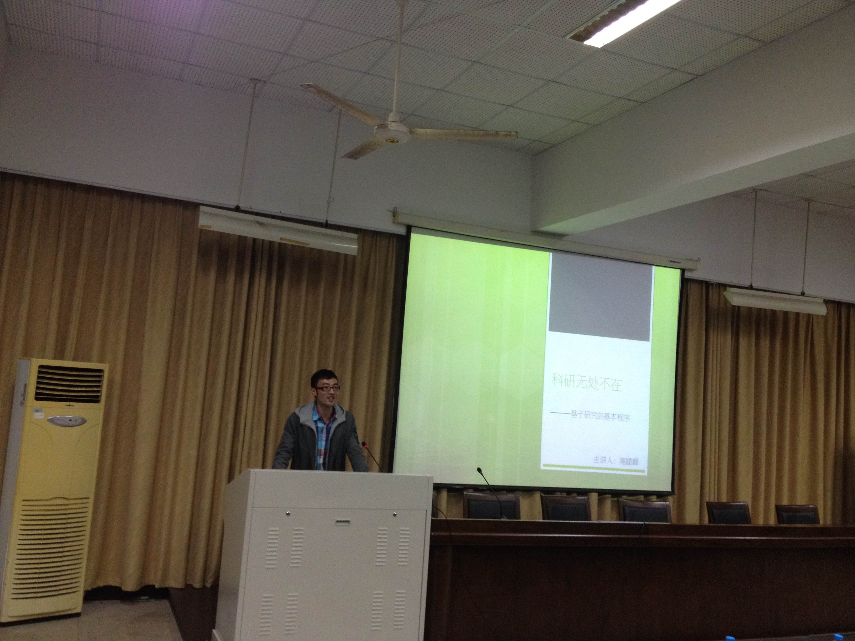 的两位学长也将自己的经验倾囊相授,从选题、团队组建,再到论文的一些步骤都一一分享。高崚峰学长着重向大家推荐了一些学术科研的资料网站和选题方面的一些建议。韩伟政学长则以自己的而经历为例,强调科研与自己专业学科结合的重要性,科研可以帮助大家对自己所学专业知识形成一个全新而又深刻的认识。现场学长与学员的互动,有问有答,讨论气氛热烈。晓秋老师也分享了她赴苏州进行第十三届全国大学生 “挑战杯”科技作品竞赛决赛观摩学习的经历,和大家分享了一些值得大家借鉴学习的案例,总结了这次的交流会。