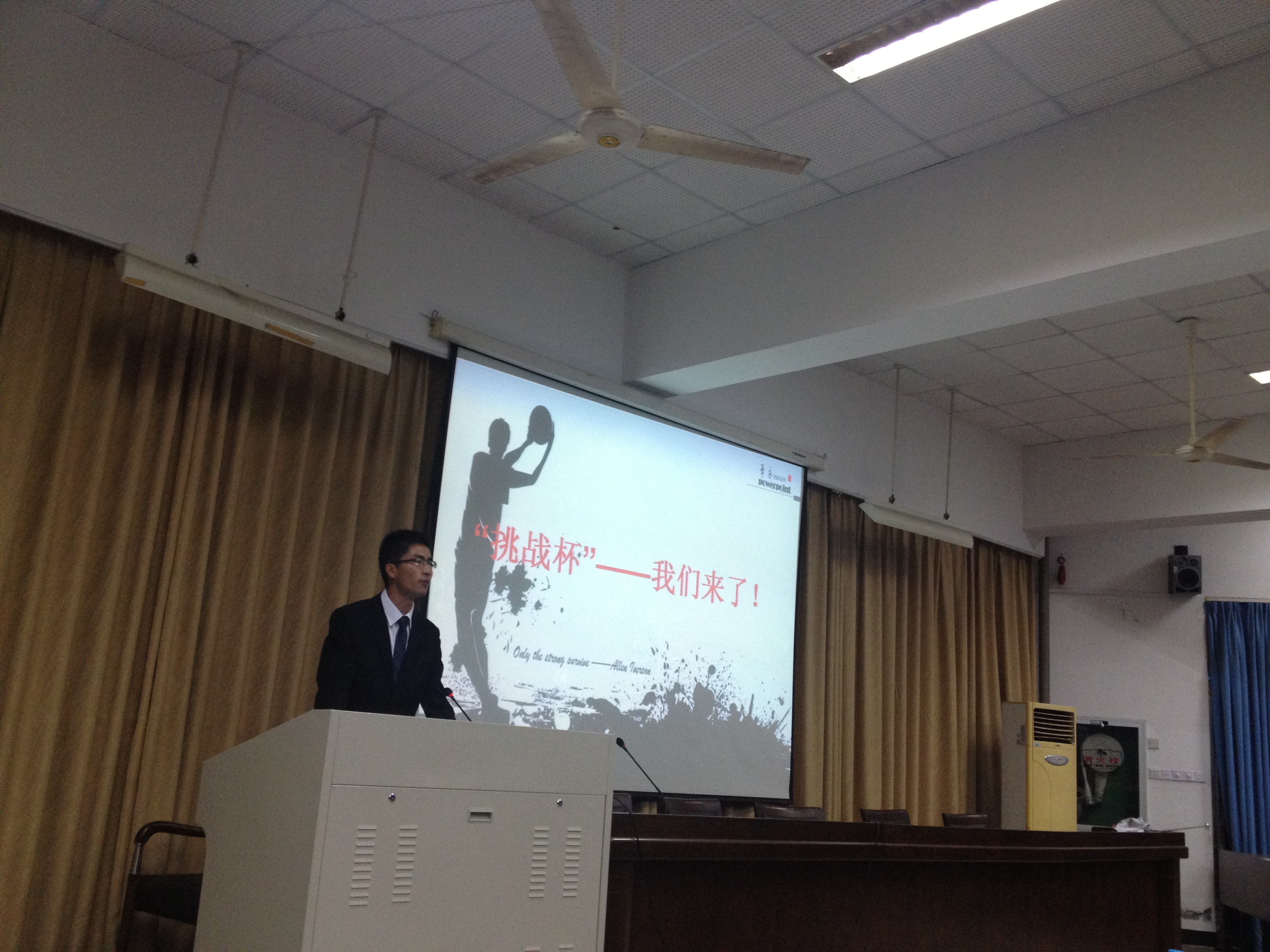 交流会开始,张翼鹏学长向大家介绍了什么是“挑战杯”,怎么参加“挑战杯”,还和大家分享了自己参加“挑战杯”的收获。他的详细介绍为大家打开了未知的 “挑战杯”大门。接着,泥巴影院