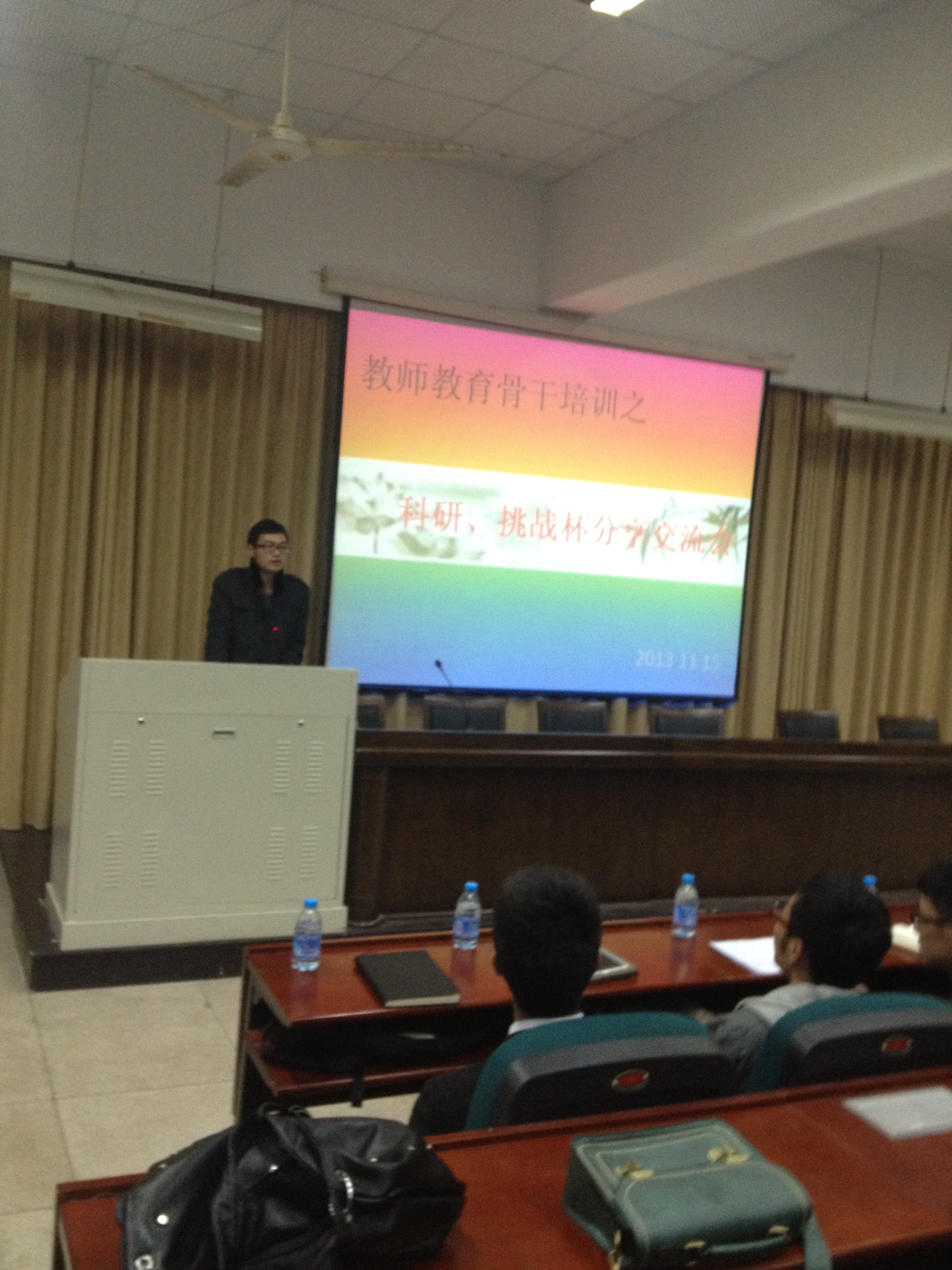 北校三号楼101会场举行了一场教师教育骨干培训系列的交流会——科研、“挑战杯”分享交流会。法政学院的张翼鹏学长、泥巴影院