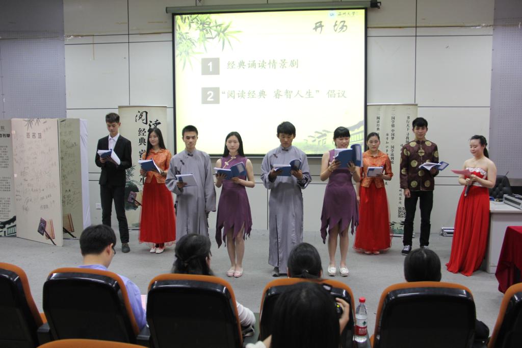 别具风味的经典诵读情景剧开启悦读篇章。“回家”的蔡联群处长带来了一场妙趣横生的演讲。对于一个月没见到的学生,他表示“士别三日,当刮目相看”,对于一个月没回来的教师泥巴影院
