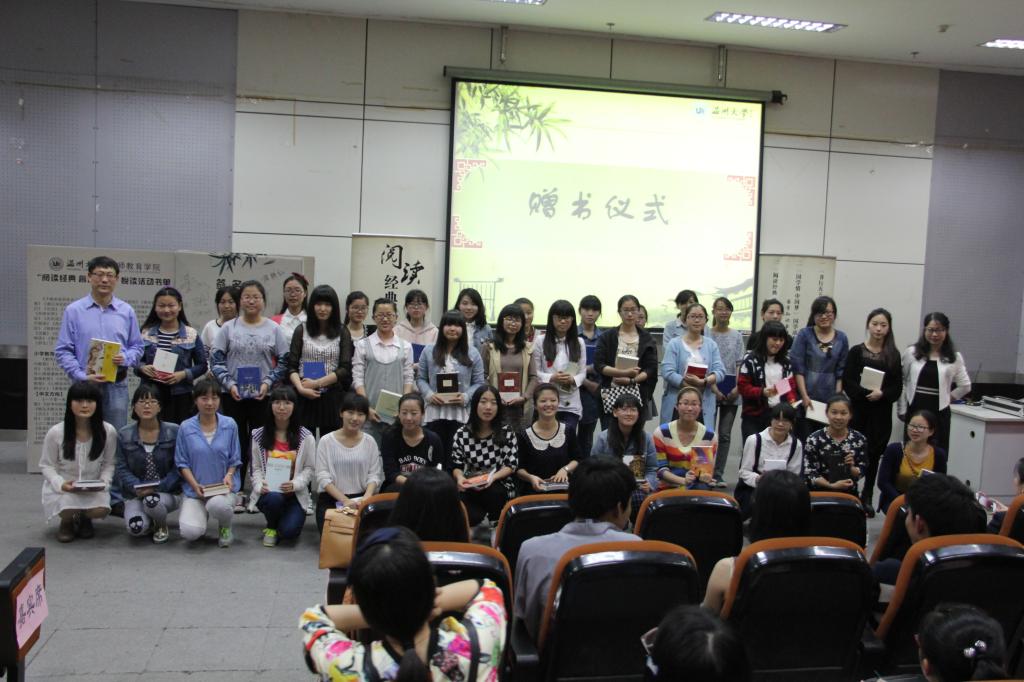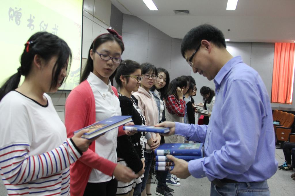 期间蔡联群老师和嵇小怡老师为36位积极参与“阅读经典 睿智人生”书香教育微悦读活动的学子赠送精美的书籍。