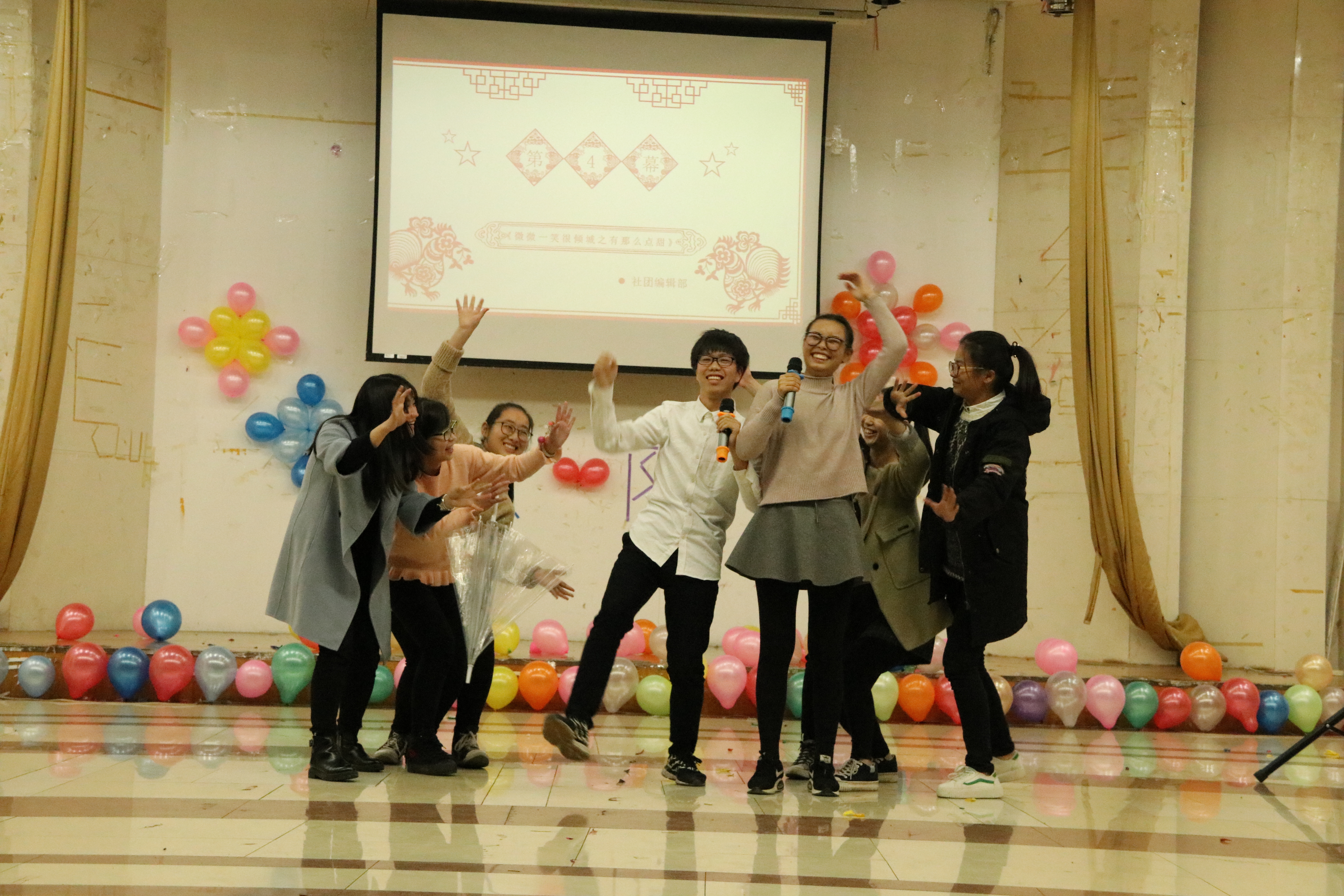 由青协的《情非得已》《演员》《至少还有你》开篇,全场便是笑点不断,高潮迭起。组织部和就业部的小品展示了高铁上的趣事,组织部和就业部的歌曲串烧,社编的《微微一笑很倾城之有那么点甜》,素拓部的《小星星》,办公室的小品《四大才子》,更有团建服务中心的热舞《你干嘛》惊艳全场。随后还有外联的《平凡之路》,纪检部的情景剧同样精彩绝伦。还有记者团田浩和青协的葛元杰带来别样风格的《水手》,琴管部富有动感的小伽秀,学术科技部深情演唱《灰色头像》,文体部的热舞《小鸡小鸡》,最后以信宣的《请大家撸串》这一前后风格大变的节目结尾。