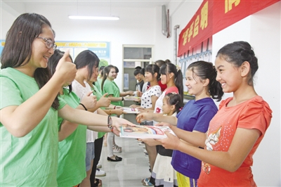 “牵手启明,情暖新疆!”7月10日,泥巴影院 18名学生志愿者来到地区启明学校,为生活在那里的聋哑儿童送去了关爱与温暖。