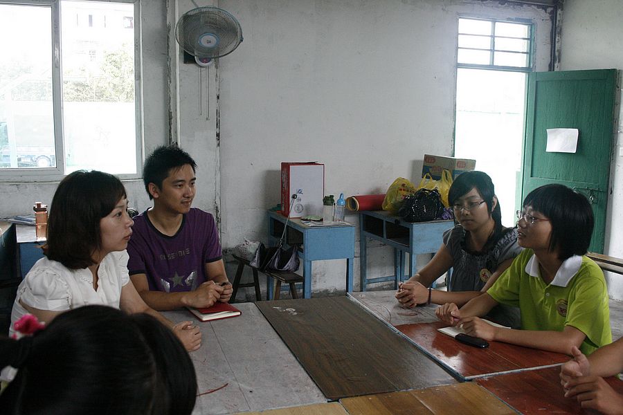早上8:30,杨书记和张老师带着礼物来到培英学校,一方面来看望我们,另一方面看一下小学生的学习状态,检验一下这几天来我们教学的效果。杨书记看到我们队员在上美术课,孩子们在底下认真听讲的情景,她表示队员们在没有任何教学经验的前提下能够很好的组织教学,掌控课堂很不容易,很值得鼓励。在看完学生的上课状态后,我们就围坐在一起,讨论自己这几天来实践的感想,队长周赛君说:“培英学校的孩子其实是很聪明的,主要的就是缺少爱,包括父母的爱和老师的爱,我们这次支教的目的不仅要教给他们知识,更要带给他们爱,给他们更多的关心。”杨书记也表示这次的实践活动很难得,大家要好好珍惜,在以后大家可能不会遇到这样的机会了,既是自己教育生涯的开始,也为自己增加了教学经验。
