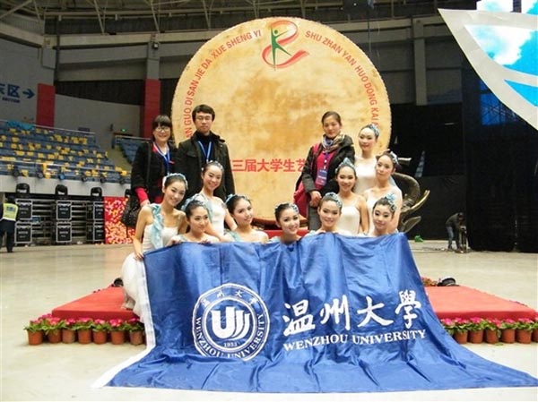 自接到参加此次全国大艺展开闭幕式的演出任务以来,学校、学院领导高度重视,全体参演学生在指导老师邵吟筠、杨婧的带领下全力以赴,利用节假日时间刻苦排练。校党委副书记牟德刚,校团委书记杨立淮,学院党总支书记蔡联群、副书记嵇小怡都到现场看望排练师生,亲切询问排练中遇到的困难,为师生们排忧解难解决后顾之忧。领导们的多次关怀,给参演师生带来了莫大的鼓舞,实践也充分证明了这一点,当《心中的纸鸢》在开幕式中亮相后,虽然演出才短短的1分40多秒,但给在场的观众留下了深刻的印象,并给邀请留下来继续参加闭幕式的演出;而表演《青春花开美山乡》的同学们把当代大学生积极向上、敢于担当历史使命的精神面貌,完美的演绎得到高度赞赏,充分展示了温大学子、教育学子朝气蓬勃、昂扬向上的良好风貌。