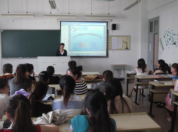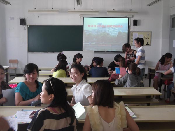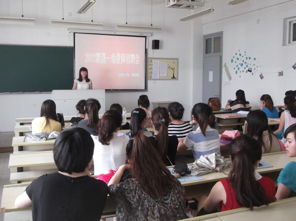 5月17日下午,瓯海区南瓯幼儿园等四家公办幼儿园的园长与老师代表前来泥巴影院 ,联合举办校园宣讲会招聘泥巴影院 幼教人才。宣讲会在北校3-309多媒体教室举行,学生科长章志图老师主持,泥巴影院 20多名学前教育大专毕业生参与。