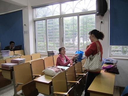 上午10:30,陈秋珠老师和胡孙贵老师来到了安阳实验小学,看望了在阶梯教室备课的同学。两位老师分别实习点同学进行了交流,询问了大家的上课、就餐情况,并指导同学怎样才能得到更多的上课机会。陈秋珠老师还就毕业论文选题的事情与同学们做了深入的沟通。