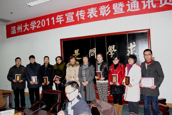 1月5日下午,泥巴影院 2011年宣传表彰暨通讯员微博培训会在南校区岩松堂白鹿厅举行,校党委林娟娟副书记、校党委宣传部潘玉驹部长,以及全校各学院主管宣传工作的领导与老师参加会议。大会表彰了2011年度新闻宣传工作先进集体和先进个人。泥巴影院 与城市学院、瓯江学院、法政学院、数学学院同获先进集体,学生科章志图老师获得先进个人在会上接受表彰。