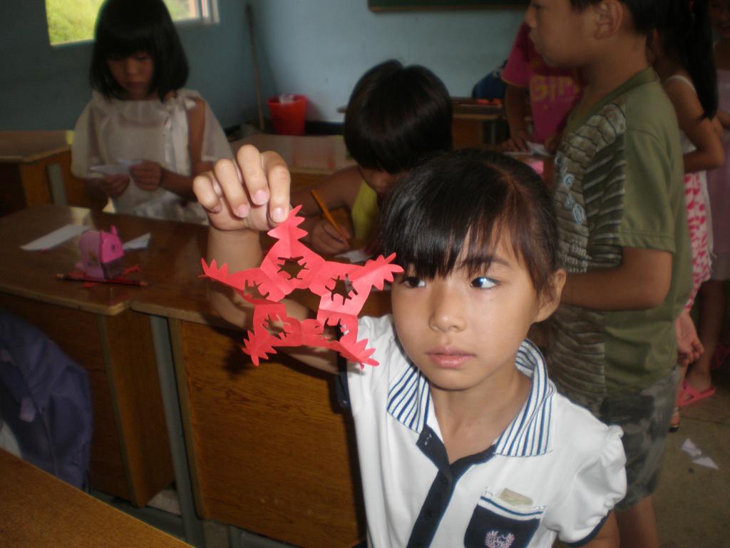 上午,高年级段的孩子们在书法老师的指导下,认真书写各自交出了一副最完美的作品。低年级段的孩子们则用老师的方法发挥自己的创意,剪出了一张张形形色色的剪纸。队员们会在这些作品中挑出最优秀的并在最后一天的汇报演出的舞台周围展出。中午,队员们又和孩子们加班加点,为合唱、课本剧等节目做最后的冲刺准备。下午热闹的“主持人大赛”如期举行,我们通过绕口令、节目展播、即兴主持三个环节评出了优秀小主持人。孩子们虽稍显稚嫩,但落落大方的台风与临机应变能力赢得了我们队员们阵阵掌声。而最后冠军的获得者潘静静同学将会和我们其中一名队员一起主持最后的汇报演出。