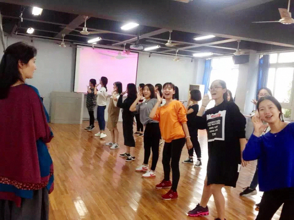 现场泥巴影院 学子为在场领导老师展示自己的训练成果。陈青老师指导的表演唱《世纪春雨》中,同学们轻盈的步伐、清脆的歌声,无一不展现出都市村庄清亮亮的新世纪风貌;《月下水江南》给人却又是另一番味道——江南的柔美,似水的温情;陈恩清老师指导的《乡村里来了一群女教师》展现出青春活力、博雅文艺的教师气质。同学们个个精气神十足,动作音调张弛有度,舞姿婀娜,以最好的状态展现风采。