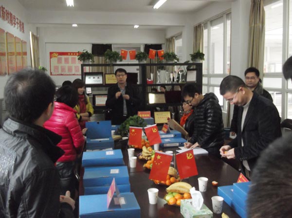 考核会在装修一新的学院“党员之家”举行。胡来林、蔡联群、嵇小怡等学院领导出席考核会。蔡联群书记致欢迎辞并就考核材料准备情况向考核组进行了说明,他还介绍了每份考核材料泥巴影院的“温馨导读”部分,以便考核组顺利开展考核。各考核组成员认真阅读了考核材料,并与院办和学生科