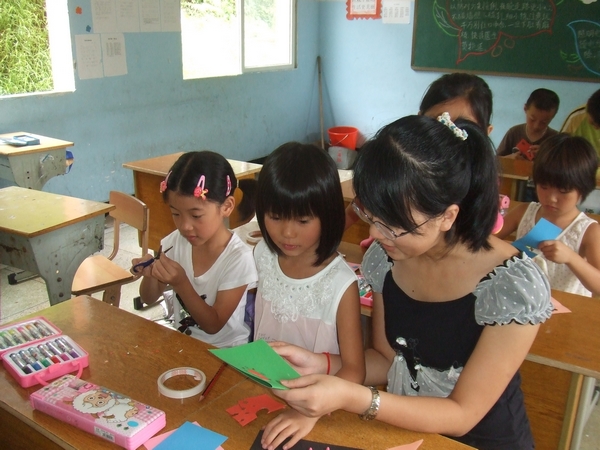 手语课程中,我们“一米阳光”实践队的队员给同学们教授了基础手语的知识内容。通过对基础手语知识的掌握。同学们都学会了用手语表示自己的名字。同学们非常聪明机智,还学会了《宁夏》这首难度稍大的手语歌曲。之外,同学们还在贺卡制作中展现了他们丰富的创造能力。他们亲手制作的贺卡,细致精美,更重要的是显示了他们的真诚。在趣味数学课中,“一米阳光”的队员们丰富了同学们的思维开拓能力,让他们自己寻找、发现规律,探讨数学意义。不仅在课内时间,同学们努力学习,在课外时间,他们也积极思考,寻找更多的解题方式。有些同学甚至是在彩排过程的休息时间中还认真学习。