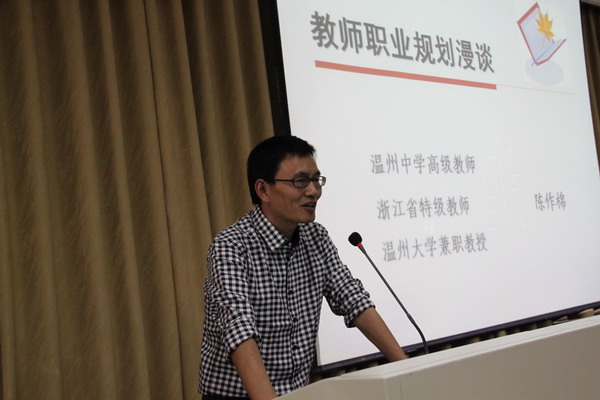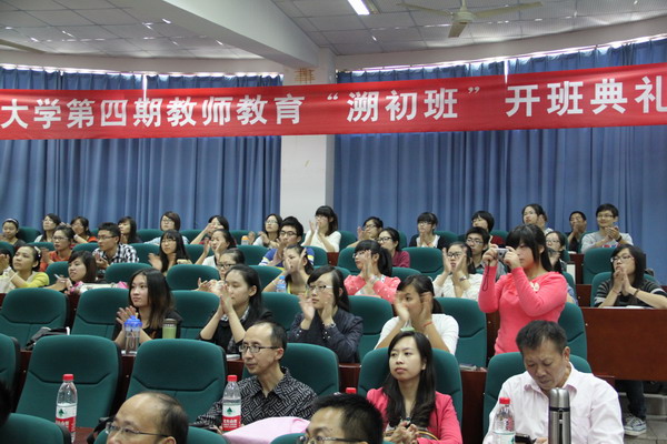兼职教授陈作棉老师对于“溯初班”的“好玩”、“好斗”、“好学”做了简短的讲话,最后教务处处长施晓秋教授对开班典礼进行了简短的总结。开班典礼结束后,陈作棉老师给新学员上了第一节课“教育理想与教育人生”。