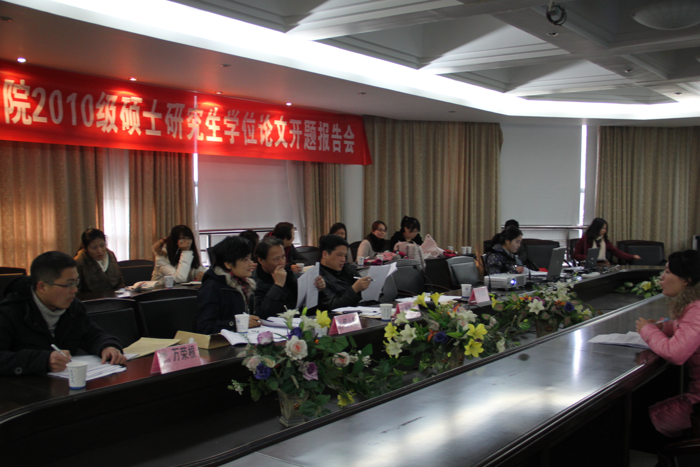 在本次开题报告会中,硕导们听取了2010级研究生的开题报告,针对每一位同学的汇报内容,指出报告中存在的问题,并提出中肯意见,为同学们开拓写作视野,修改论文大纲,完善研究内容,提供了参考和借鉴。2010、2011级研究生纷纷表示本次开题报告让他们获益匪浅,有助于他们更顺利地进行毕业论文写作。