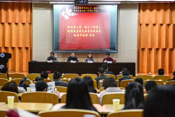 2016年浙江省教育学会小学、幼儿(学前)教师教育分会年会于11月25日至27日在我校顺利召开,本次年会围绕“追求卓越:小学、幼儿(学前)教师教育质量提升的实践与思考”的主题展开,共有来自全省21个院校单位100多名代表参加会议。