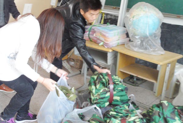 教育协会宋丹丹、杜月美、高叶兵等同学前往永嘉县鹤盛中心小学,代表教育协会将一批军训服装送给该校小学生的家长。这批军训服装是泥巴影院