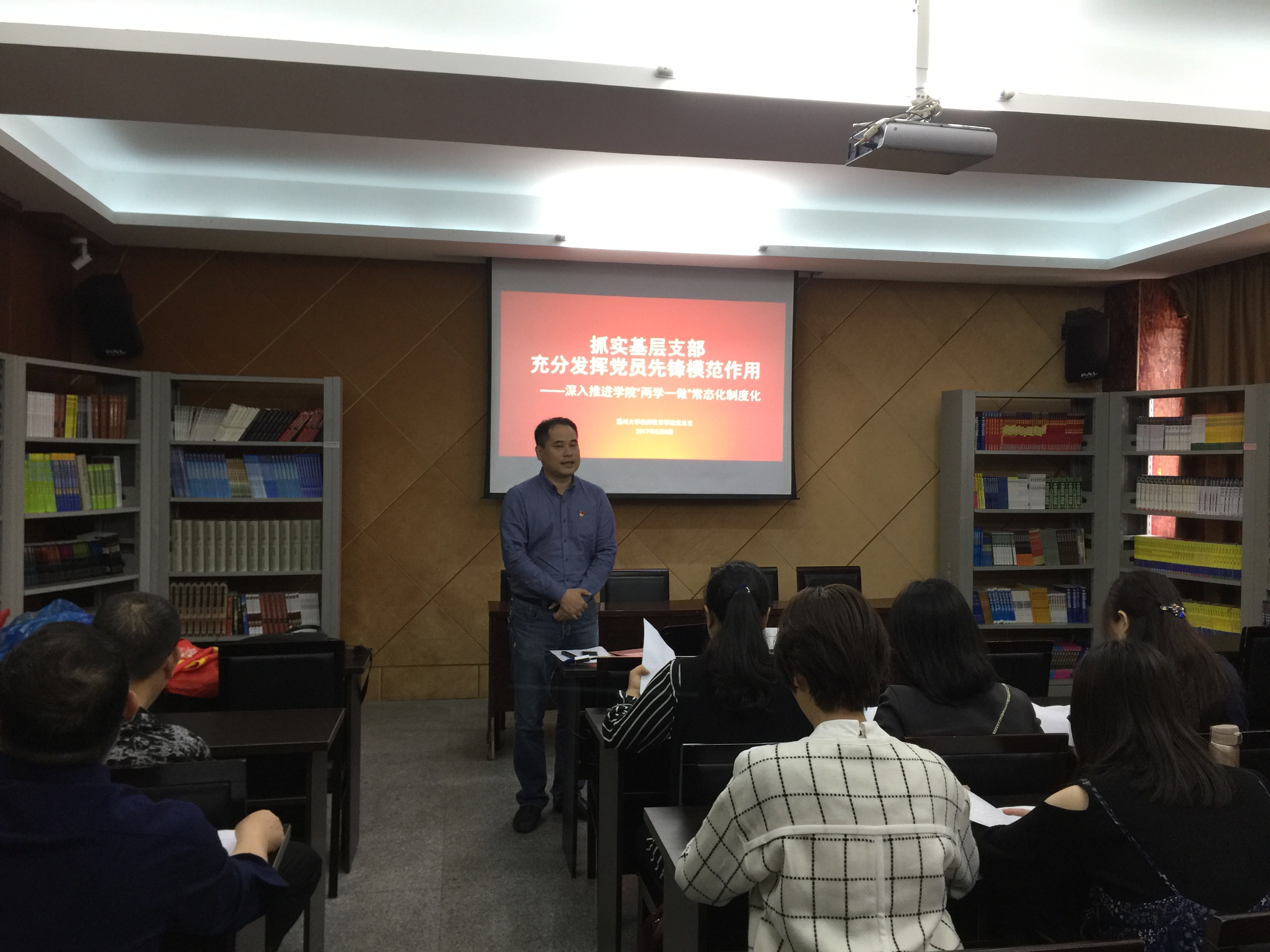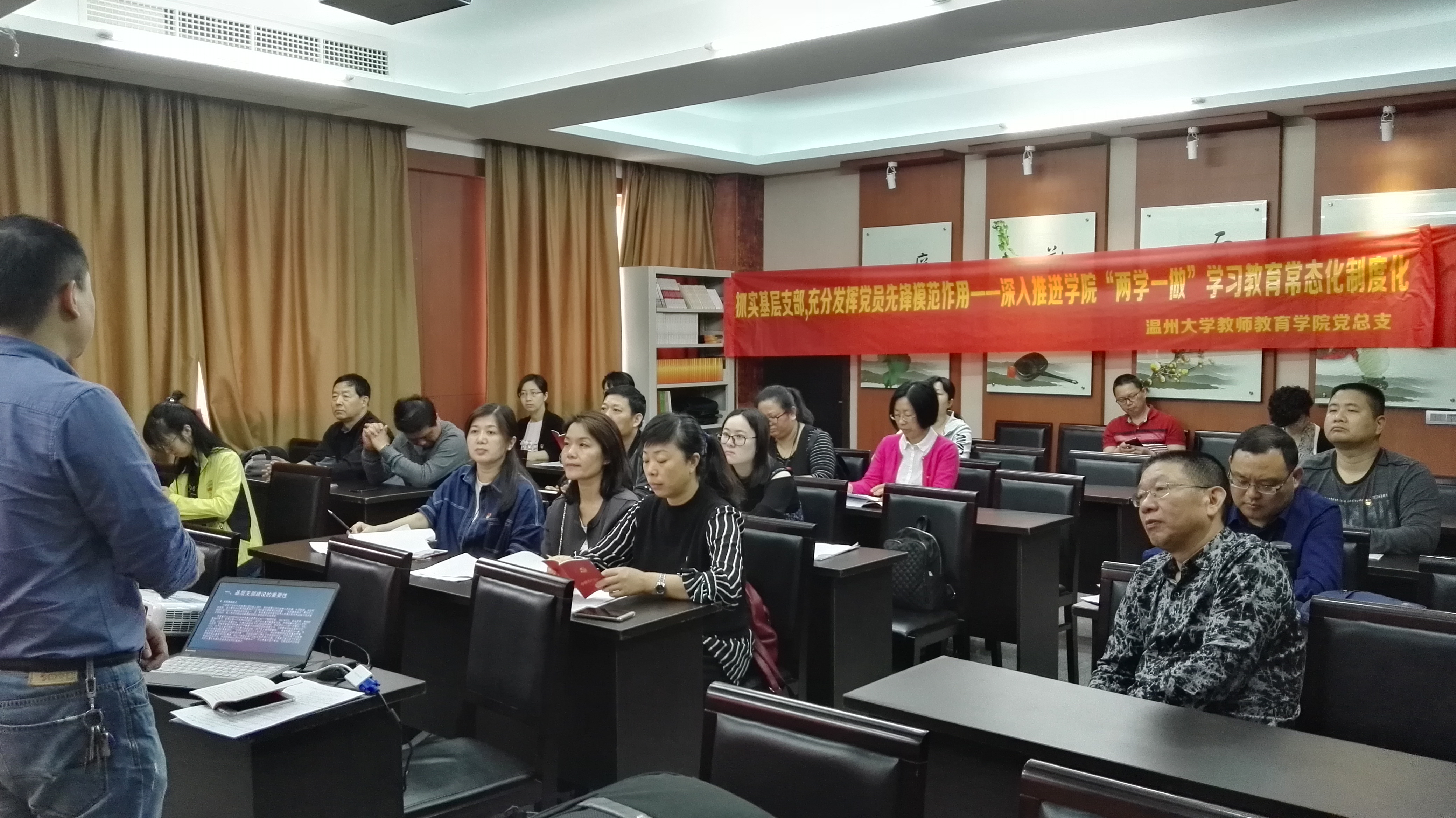 为深入贯彻落实习近平总书记对推进“两学一做”学习教育常态化制度化作出重要指示精神,按照中共中央办公厅《关于推进“两学一做”学习教育常态化制度化的意见》的精神,切实推进学院“两学一做”学习教育常态化制度化。同时结合全国全省思想政治工作会议精神,按照“高校教师要坚持教育者先受教育”等要求,开展经常性的教职工理论学习活动和爱国主义教育活动。