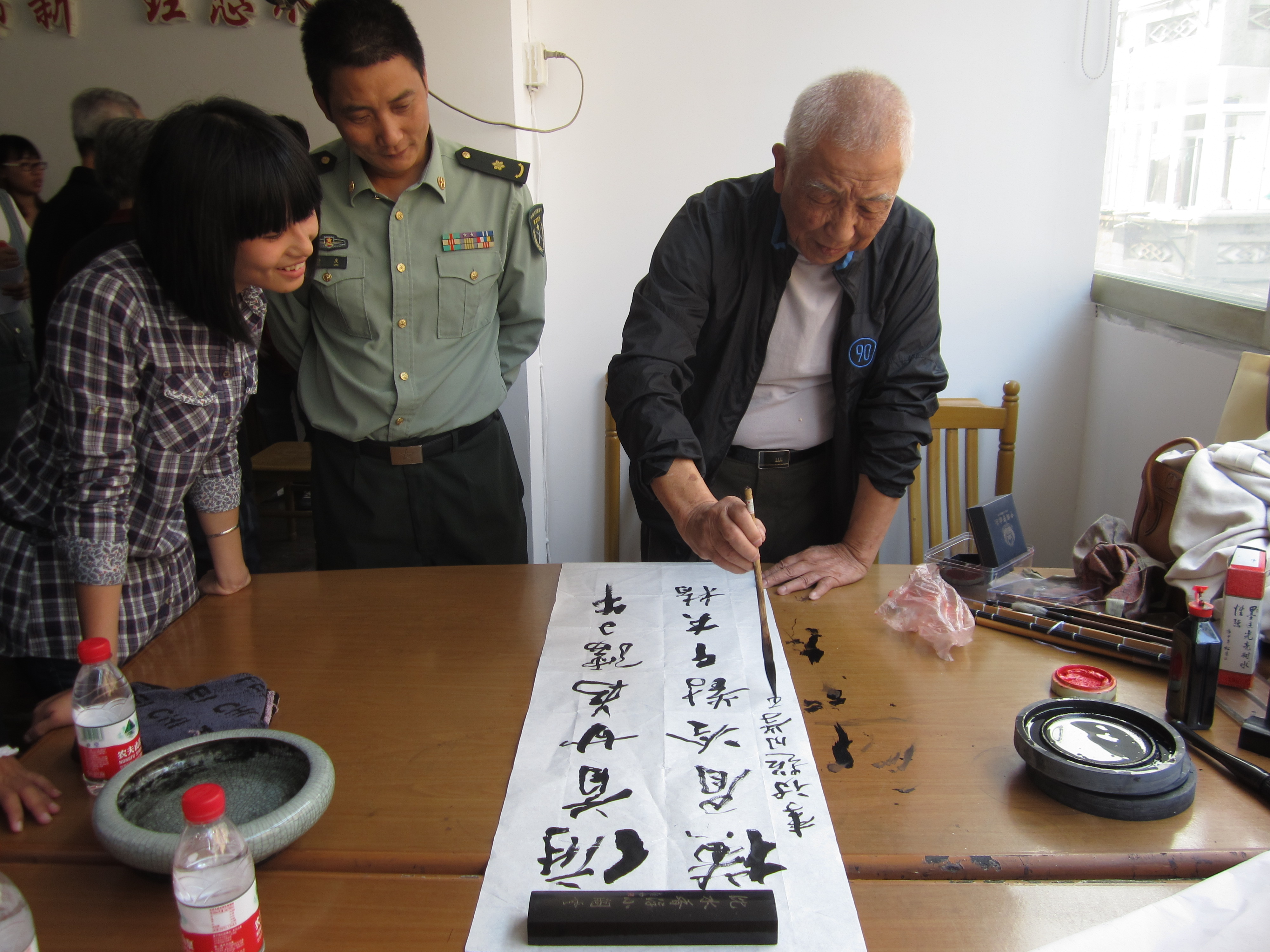 整场演出虽然节目数量比不上大型晚会,但是质量绝不输于大型晚会,在整场演出过程中,洋溢着浓浓的温馨感。演出结束后,被爷爷奶奶们称为大书画家的汤爷爷也按捺不住,拿出自己的文房四宝泼墨挥毫了一回。还有好多志愿者在看了爷爷的书法之后,都忍不住向爷爷请教练书法的方法,甚至讨要作品来学习的。