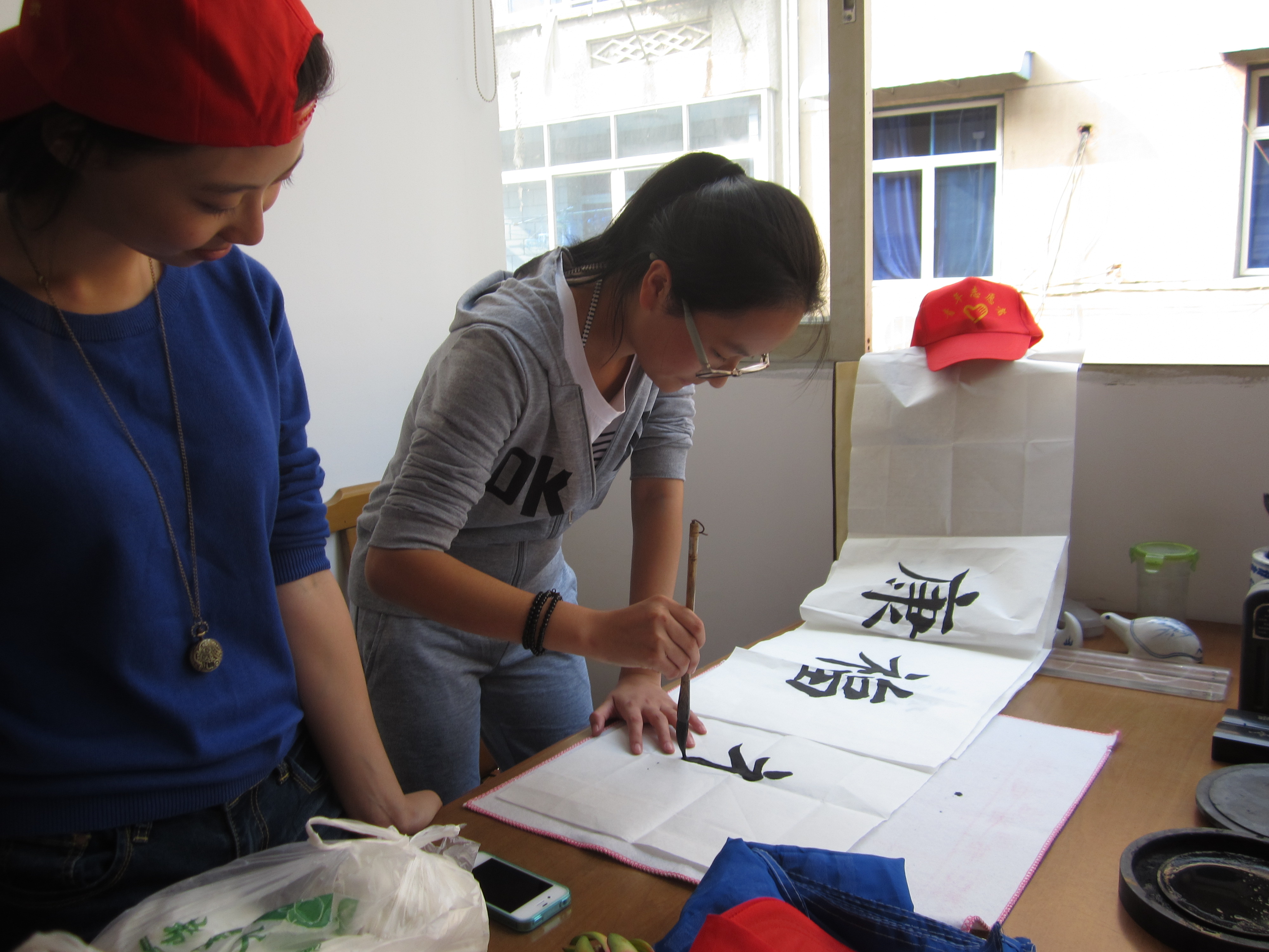 女生的多才多艺。之后,现场书写送给老人们的书法作品,又再一次的说明了泥巴影院