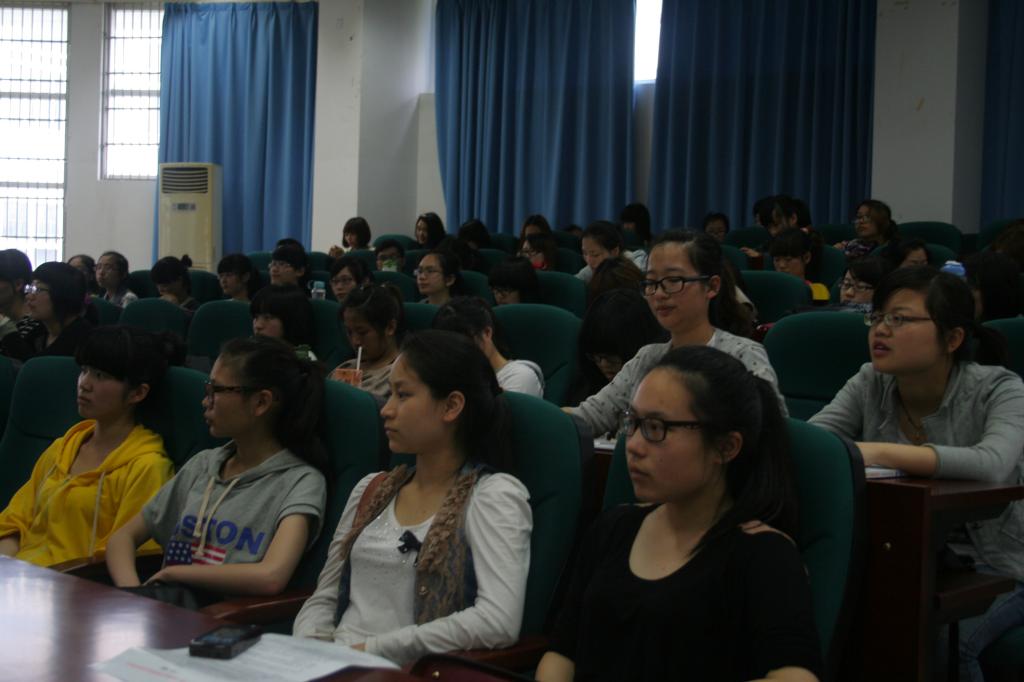 紧接着,胡老师结合自身经验,向我们诠释了教师应具备的素养。他指出,社会缺的不是教师,是优秀教师。而新时代的优秀教师需要谨记以下五点:理想、道德、水平、发展和修养。“理想”即每一个教师心中都要有理想,并且为之不断奋斗。而“道德”则是要做到眼里有自己、眼里有学生、眼里有他人。“水平”指的是要有深厚的专业功底,这样才能更好地传道、授业、解惑。“发展”则要求我们做到实践、反思、研究。良好的“修养”是每一位教师所必备的,这毋庸置疑。他在强调师范专业良好的就业前景的同时,也对我们提出了更高的要求。我们在对教师这一职业的内涵有了深刻的了解的同时,也深深地体会到我们所面临的挑战。胡老师的讲座在学员们热烈的掌声中结束。