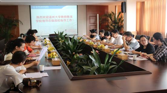 院长郑信军,副院长孙芙蓉,教学科科长何笃玉,学前教育系主任曾国,温大驻温职专挂职教师陈恩清等一行六人莅临温州职业中等专业学校进行学前教育五年一贯制新生入学调研工作,参会的有温职专校长朱虹和各个科室负责人,以及幼师学部各专业教师。