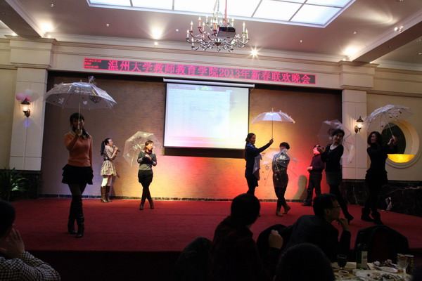 辞旧迎新,欢歌笑语。1月13日晚,激情飞扬的学院2013年春节联欢会在馨博园隆重举行,全院教师欢聚一堂共贺佳绩,共庆新年。丽水学院院长周湘浙以及曾在教师泥巴影院 工作过的领导与嘉宾出席了学院春节联欢会。联欢会由郑晓、陈秀雅两位老师主持。