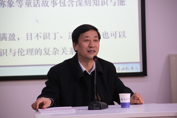 在彭小明副院长向大家介绍了郝教授后,郝教授做了主题发言。他从教育学和教育哲学的研究领域入手,谈了自己对教育现象、教育思想、教育存在、教育规律等概念的理解,并指出,教育学是研究教育存在的,不是透过现象看本质,而是要透过本质看本质。接着郝教授又谈到了自己的重要学术观点——主体间性,指出教育是主体间的指导学习。然后从指导学习的角度,提出了本次沙龙的核心概念——知核力。他认为,知识有两大特性:知识的能力性和知识的伦理性。所谓知核力,就是揭示知识与能力以及知识与伦理的复杂关系,因此,知核力的“核”就如同核反应、核裂变、核聚变一样,研究知核力可以使教师在教育教学中获得巨大的能量。