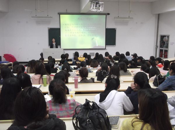 09学前专三班,泰顺生源考上泰顺教师编制,现在泰顺县彭溪镇月湖中心小学工作。她首先从必要性和重要性向毕业生介绍了教师编制,接着分考前准备、考试形式、笔试和面试技巧等方面做了详细的说明,并结合个人的考编经验给在座的毕业生们提出了宝贵的意见和建议,她特别指出在平时要加强撰写教案和说课、试讲的能力。