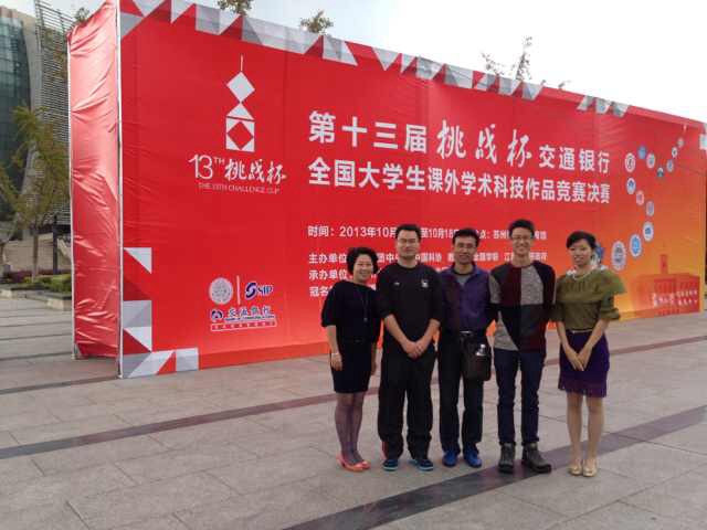 2013年10月13日至10月18日由共青团中央、中国科协、教育部、全国学联、江苏省人民政府主办,苏州大学和苏州工业园区管委会共同承办的第十三届“挑战杯”交通银行全国大学生课外学术科技作品竞赛决赛在苏州大学开幕。我校有三件作品进入终审决赛,四件作品进入现场展示。泥巴影院