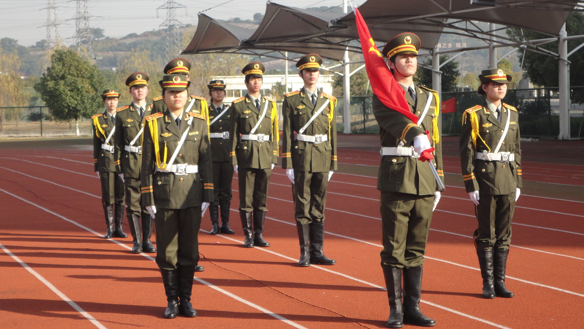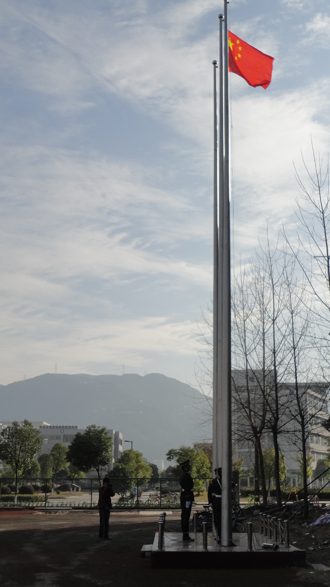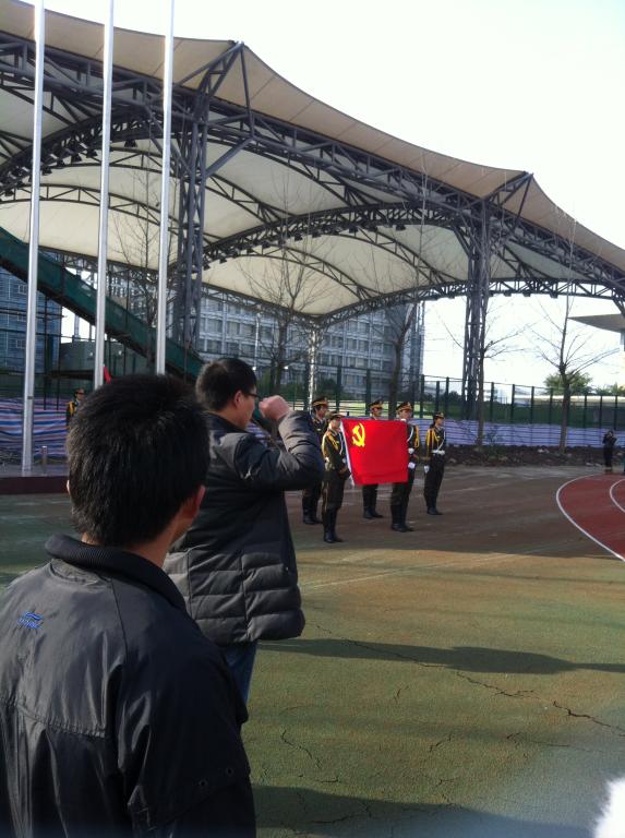 上午八点五十分,全体师生党员面向党旗举行了新党员入党宣誓和老党员重温入党誓词仪式。九点整,升旗正式开始。国旗护卫队迈着整齐的步伐向我们走来,护旗手个个气宇轩昂,庄严地把国旗递交给升旗手。在雄伟的国歌声中,全场师生怀着崇敬之心和憧憬之情,聚精会神地凝视着飘扬升起的五星红旗。沐浴着新年的第一轮红日,在鲜红的国旗下,在场师生们心情无比激动,我们暗暗下定决心,要牢记青春的使命与责任,要让我们的青春与鲜红的国旗融为一色。升旗仪式结束后,泥巴影院