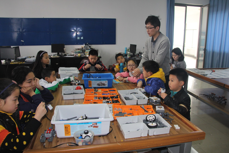 6号楼教师教育实验中心参观体验。在实验中心老师的带领下小学生们分别参观了乐高机器人实验室、 教育机器人实验室、未来课堂实验室和小学科学实验室。