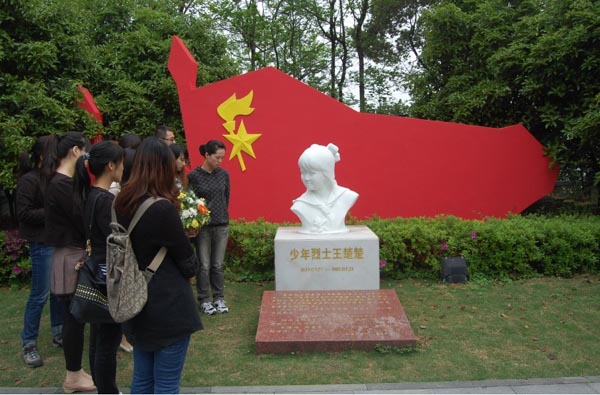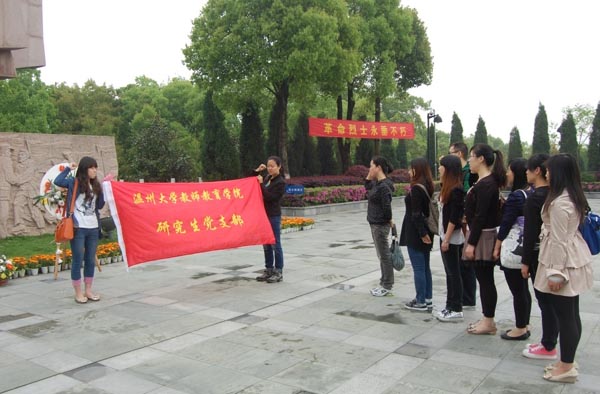 瞻仰结束后,同学们回到纪念碑前,向革命先烈敬献了花篮,以表达青年学子对烈士的深深敬意与无限哀思,党员们还庄严地举起右拳,面向烈士纪念碑重温了入党誓词。“桃花红雨英雄血,碧海丹霞志士心。今日神州看奋起,陵园千古慰忠魂!”让我们牢记这一段段可歌可泣的悲壮史诗,牢记那一张张曾经鲜活的面容,静静的追思、深深地缅怀,把最深情的思念和最崇高的敬意,寄托在这鲜花和誓言中!