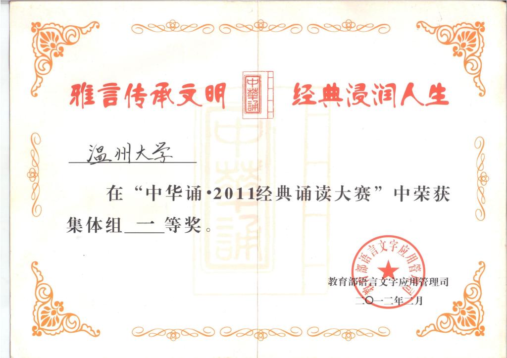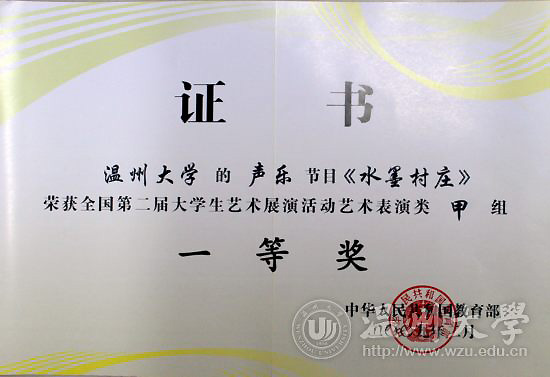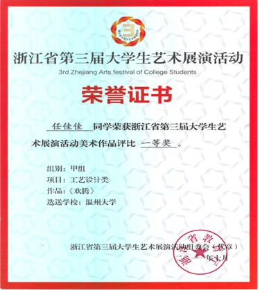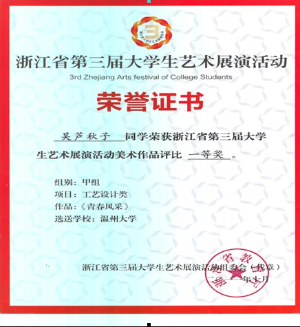 4、 2011.10浙江省大学生艺术展演比赛一等奖。